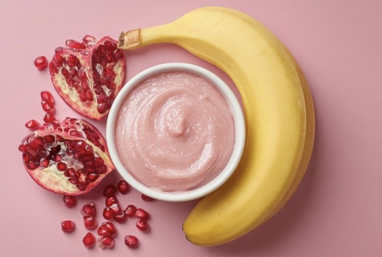 בננה מעוכה עם מיץ רימון תחייה עור יבש ועייף.