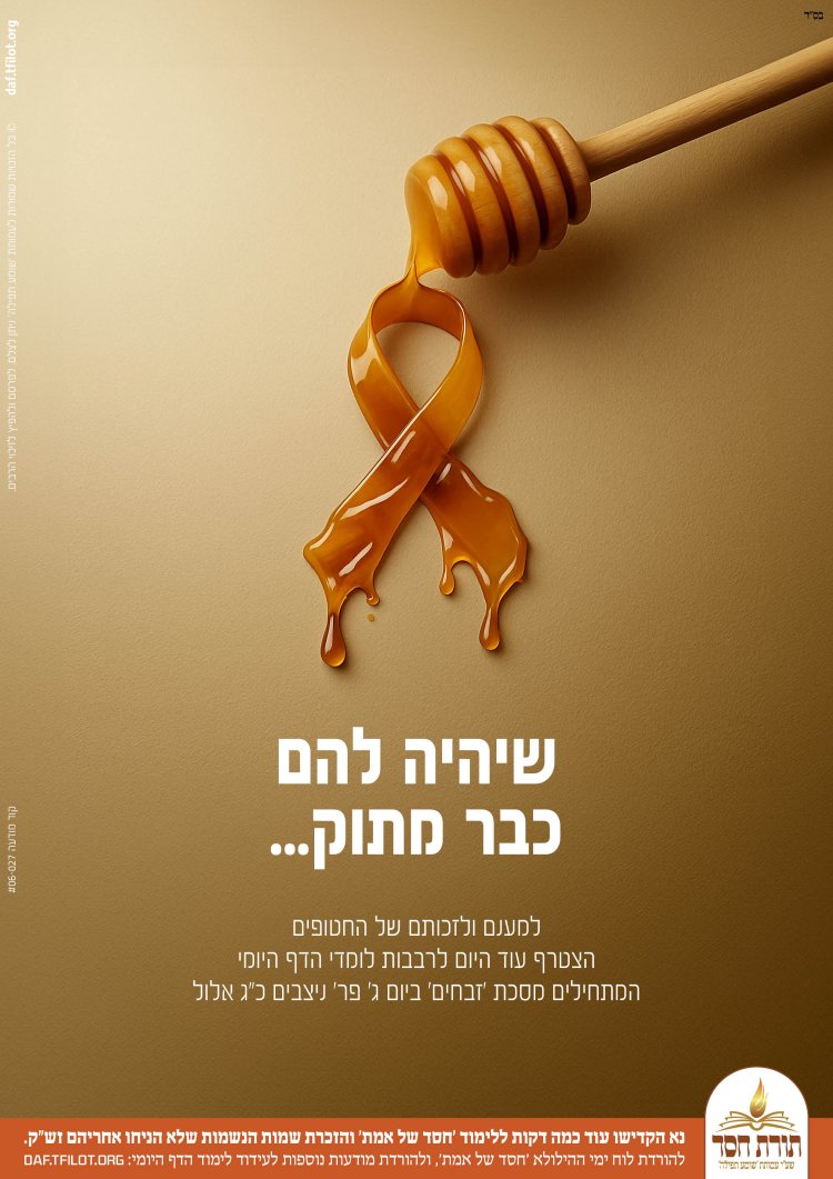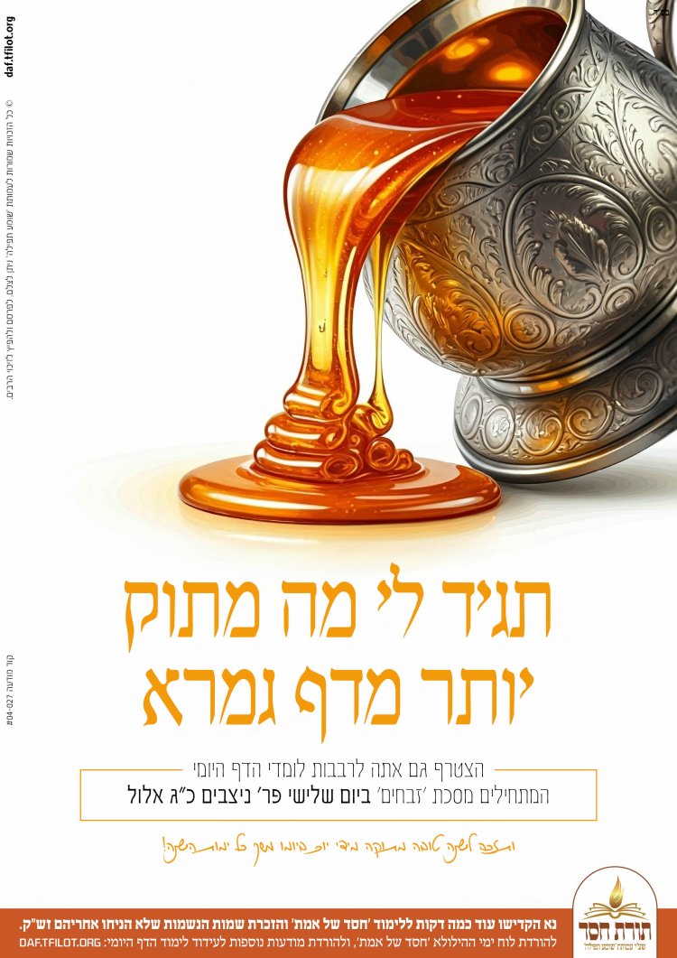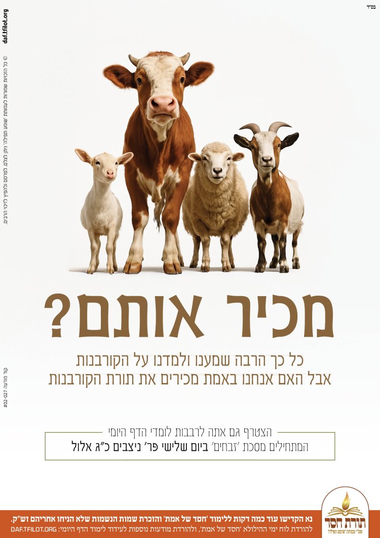 עוד לא הצטרפתם ללימוד הדף היומי? עכשיו זה הזמן: צפו במודעות המצורפות, המזמינות אותך להצטרף היום ללימוד מסכת זבחים. מחכים לכם