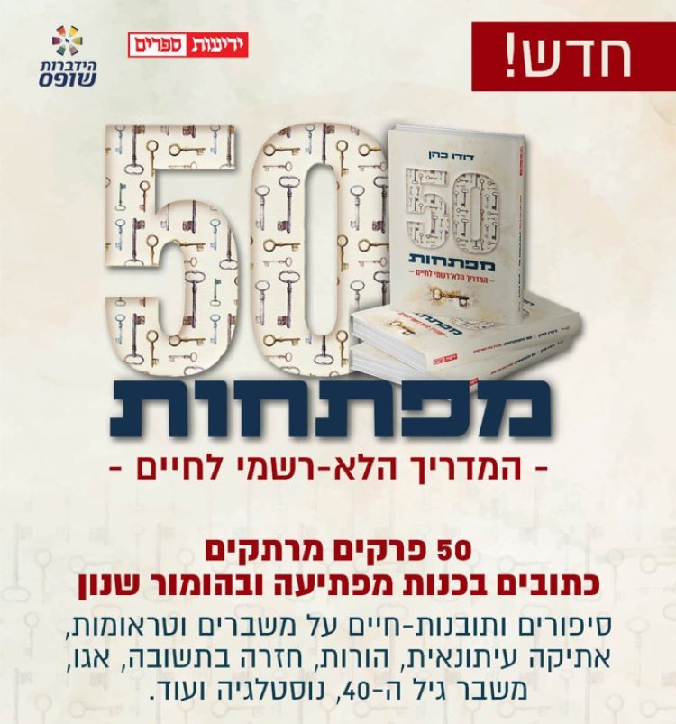 מבצע מיוחד לרגל השקת ספרו החדש של דודו כהן, "50 מפתחות: המדריך הלא-רשמי לחיים". לפרטים היכנסו לאתר הידברות שופס או חייגו 073-222-1250