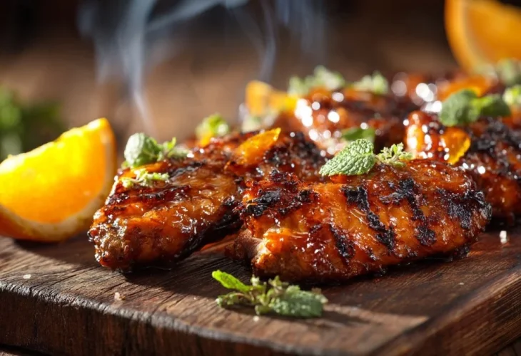 מערבבים את הרטבים עם ריבת התפוזים והצ’ילי הגרוס, מצפים את הכנפיים היטב ומשרים לשעה לפחות. על המנגל, נותנים לרוטב להתקרמל ומקבלים כנפיים מתקתקות־חריפות עם טעם מעושן.