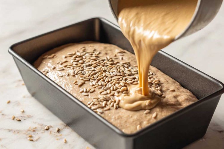 - שפכו לתבנית, יישרו בעזרת מרית ופזרי למעלה שומשום או זרעי חמנייה.