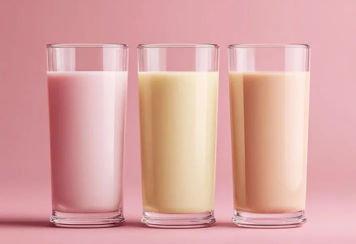 חלב פרה מכיל כ-7 גרם חלבון לכוס, 80-120 קלוריות וגם 200-400 מ"ג סידן. חלב סויה נחשב לתחליף הטוב ביותר מבחינה תזונתית - הוא דומה בהרכב חומצות האמינו לחלב פרה, מכיל סידן וגם חלבון, 4-7 גרם לכוס. חלב שקדים כולל מעט חלבון, בדרך כלל 1-2 גרם, וקלוריות נמוכות אך לעיתים סוכר נוסף. חלב אורז עשיר בפחמימות (כ-20 גרם לכוס) וחלבון נמוך. חלב שיבולת שועל מכיל פחמימות רבות וחלבון מועט, ולכן כדאי לבחור מוצרים עם רשימת רכיבים קצרה כדי להפחית תוספים מעובדים.