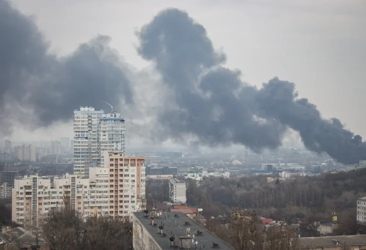 ראש עיריית קייב, ויטאלי קליצ’קו, דיווח כי בניין בן תשע קומות נפגע במחוז דסניאנסקי שבצפון-מזרח הבירה. בה בעת, ראש המינהל הצבאי של העיר, טימור טקצ’נקו, מסר כי בניין נוסף, בן 16 קומות, נפגע גם הוא באותו אזור. לדבריו, הפגיעה גרמה לשריפה נרחבת ולניפוץ חלונות בין הקומות הראשונה לתשיעית.