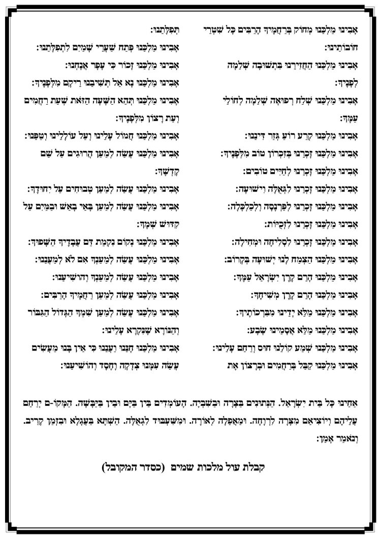 (ח) אַל תִּזְכָּר לָנוּ עֲוֺנֹת רִאשֹׁנִים מַהֵר יְקַדְּמוּנוּ רַחֲמֶיךָ כִּי דַלּוֹנוּ מְאֹד.