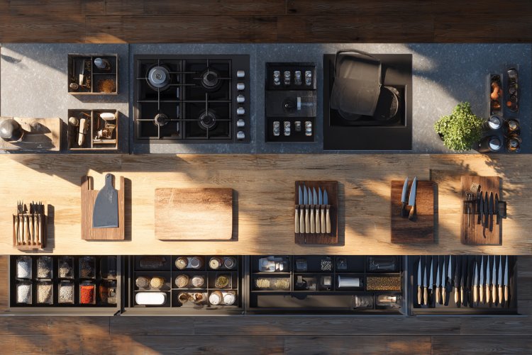 חלקו את המטבח לאזורי עבודה ברורים וארגנו בהתאם כל אזור בצורה חכמה לדוגמא, האזור הבישול יכלול את הכיריים, מתחתיהם מקמו את מגירת הסירים, בסמוך שימו את מדף התבלינים, את סכיני החיתוך וכו'. ארגון הגיוני בהתאם לאזורי עבודה יקלו מאוד על העבודה במטבח ויתרמו לשמירה על הסדר בחלל.