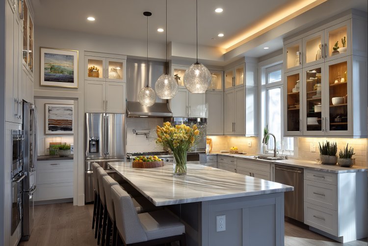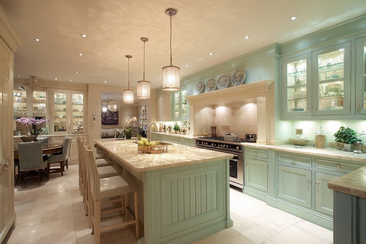 האירו את המטבח בתאורה המפזרת את האור באופן שווה בכל המטבח, מבלי להזניח "חלקים מתים". הוסיפו תאורה מעל משטחי העבודה הממוקמות מתחת לארונות העליונים, בתוך ארונות עמוקים (כמו המזווה) ותאורה עיצובית בארונות בר או ארונות לאחסון כלים נאים. אל תשכחו להוסיף תאורה חמה מעל האי או דלפק המטבח שיוסיפו לאווירה במטבח.