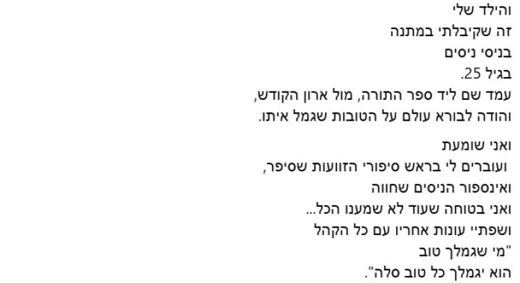 "איתן עמד ליד ספר התורה, והודה לבורא עולם על הטובות שגמל איתו"