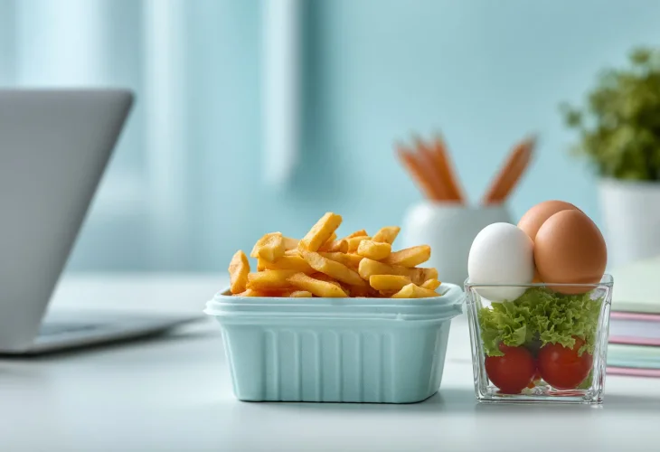 עוגיות, שוקולד או בייגלה המונחים במטבחון מפתים רבים באחת: דחף למתוק או לחטיף קל. אלו קלוריות וסוכרים מיותרים שנצרכים כמעט ללא מודעות. הפתרון: תכנון נשנוש יומי. הקציבו מראש זמן לנשנוש אחד ביום, והכינו אותו מהבית. פירות חתוכים, יוגורט טבעי, אגוזים ושקדים (בכמות מבוקרת) הם חלופות בריאות המספקות שובע ואנרגיה.