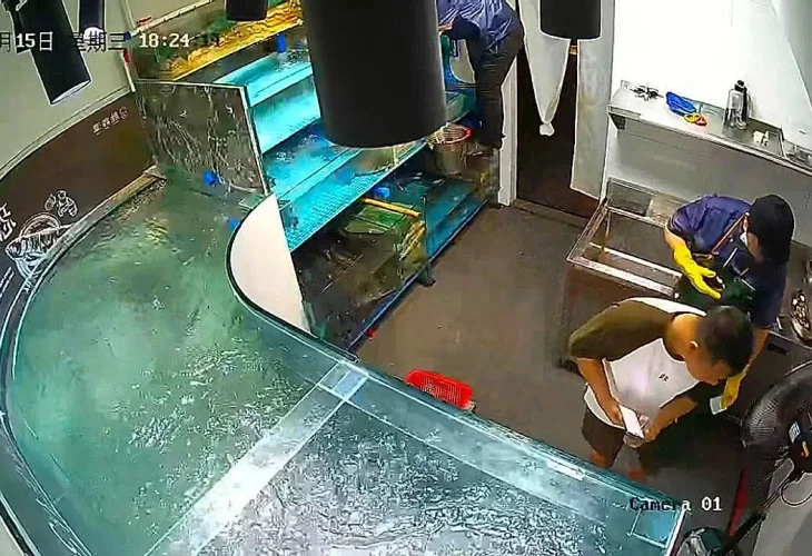 מסעדת דגים יוקרתית בסין שילמה ביוקר ללקוחות המסעדה, לאחר שאקווריום ובו עשרות דגים שהוצגו לראווה - התפוצץ לפתע וגרם למהומה