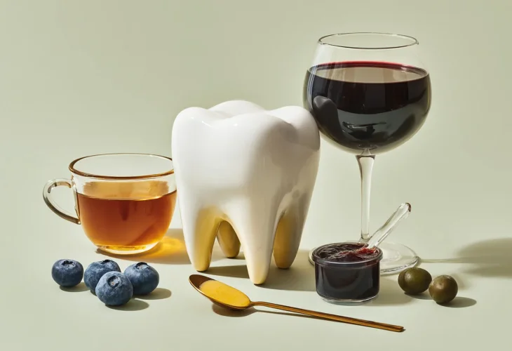 אז אילו פריטים שכיחים נמצאים ברשימת החשודים העיקריים? הראשון הוא יין אדום. השילוב של חומציות גבוהה וטאנינים כהים שוחק את האמייל והופך אותו ל"דביק" יותר, כך שהפיגמנטים נצמדים אליו ביתר קלות. שטיפה מיידית של הפה במים לאחר שתייה יכולה לצמצם את הנזק.