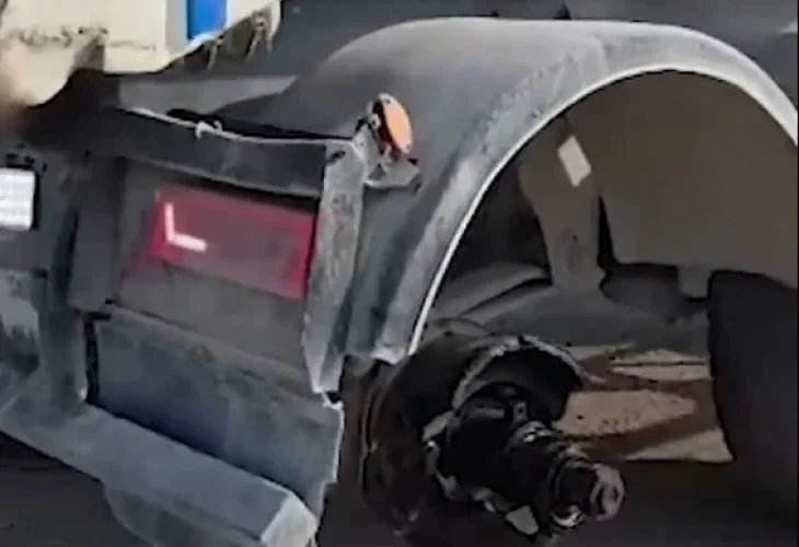משאית פול-טריילר עם נגרר הורדה מהכביש, לאחר שנצפתה נוסעת עם עגלה ללא גלגל אחורי - בבדיקה נמצאו כשלים נוספים. צפו