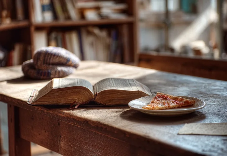 "בישיבה, אחת לתקופה היה יום שבו הטבחית הכינה פיצה. הפיצה הזו היתה שם דבר בכל הישיבה. אפילו בוגרי הישיבה נזכרים בה בגעגועים. היה לה, לטבחית, מתכון משובח במיוחד לפיצה, וכל מי שטעם ממנה – נשבה בקסמה. באחד מאותם ימים מיוחדים, כולם ירדו אל חדר האוכל. אני, לעומתם, התמהמתי. למה? לא יודע. כמו תמיד, חייתי כמו תחת שעון אחר, עם זמנים משלי. לא זכרתי שיש ארוחת ערב, לא זכרתי שיש פיצה, הייתי שקוע בענייני.