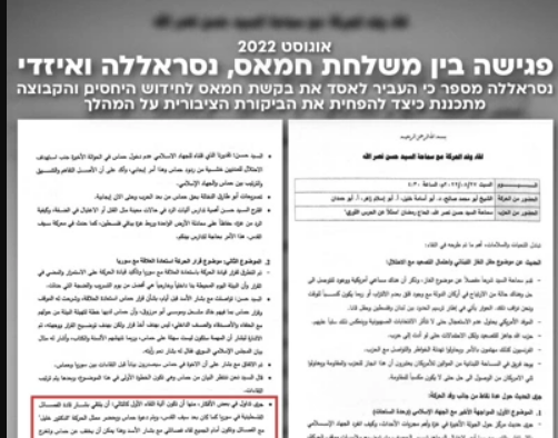 מסמכים של אמ"ן חושפים כי מנהיגי חמאס, בתיווך חיזבאללה, חידשו במהלך שנת 2022 את הקשרים שנותקו בעבר עם נשיא סוריה בשאר אל אסד, בעודו בשלטון. חמאס רצה להבטיח שאסד יאפשר לו לפעול משטח סוריה