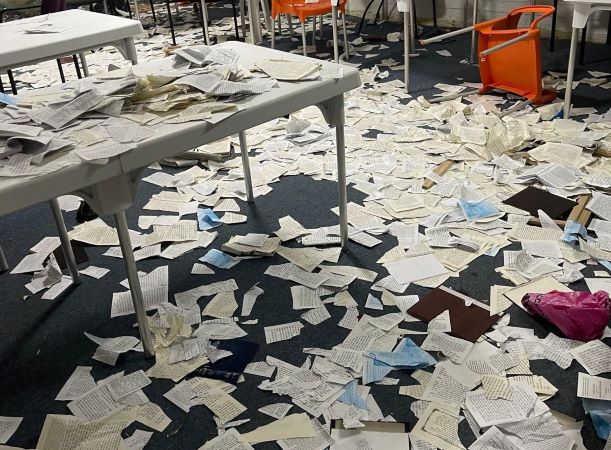 (צילום: דוברות המשרד לשירותי דת)משטרת ישראל פתחה היום (שבת) בחקירה בעקבות התפרצות וגרימת נזק לבית כנסת ביישוב קדימה-צורן. שוטרים הוזעקו לבית הכנסת לאחר שמתפללים גילו ספרי תורה וספרי קודש מושלכים ומחוללים על רצפת בית הכנסת. מנכ"ל המשרד לשירותי דת, יהודה אבידן, אמר בצאת השבת: "אין להשלים עם מעשה נפשע כזה במדינת היהודים, והוא מהווה חציית קו אדום מוסרי וערכי".