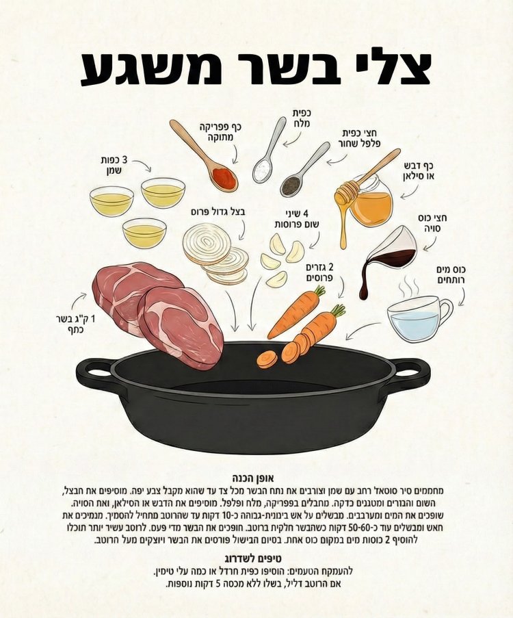 לפעמים דווקא בימים הכי עמוסים מתחשק להתענג על ארוחה ביתית מושקעת ומנחמת. אם אתם קצרים בזמן ומשוועים לארוחה בשרית טעימה ומפנקת במינימום זמן, המתכון הזה הוא בשבילכם: צלי בשר רך ומפנק שיגרום לכם להגיד "וואו". תוכלו להכין אותו לכבוד שבת קודש, וגם כמנה עיקרית טעימה במיוחד באמצע השבוע.