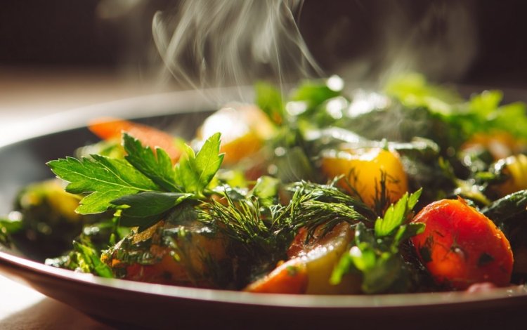 למרות שהסלט חם, השפים כמעט תמיד סוגרים את המנה עם עשבים טריים. פטרוזיליה, כוסברה, שמיר או סלרי מעניקים שכבה של רעננות ומקפיצים את הניחוחות.