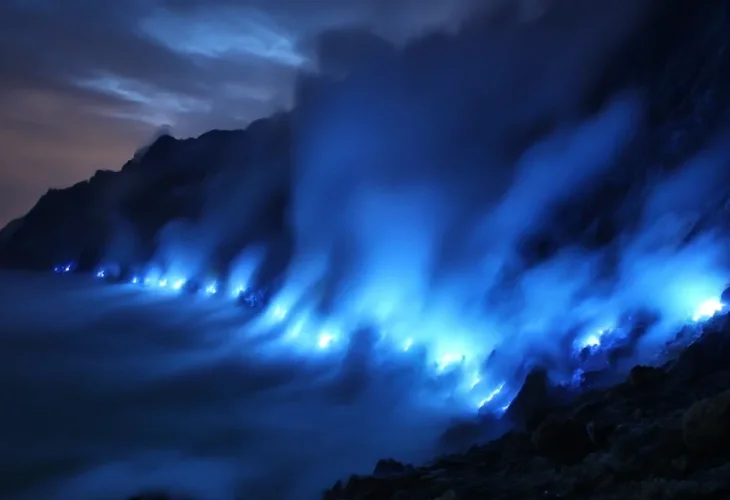 מי שזוכה לצפות בהר קאווה איג'ן שבאינדונזיה בלילה, עלול לחשוב לרגע שהוא עומד מול אפקט מחשב מרהיב: זרמים כחולים חשמליים זוהרים היורדים במורד ההר, כאילו לוע הר געש פולט אש כחולה בוהקת, מה שמכונה תופעת "הלבה הכחולה".