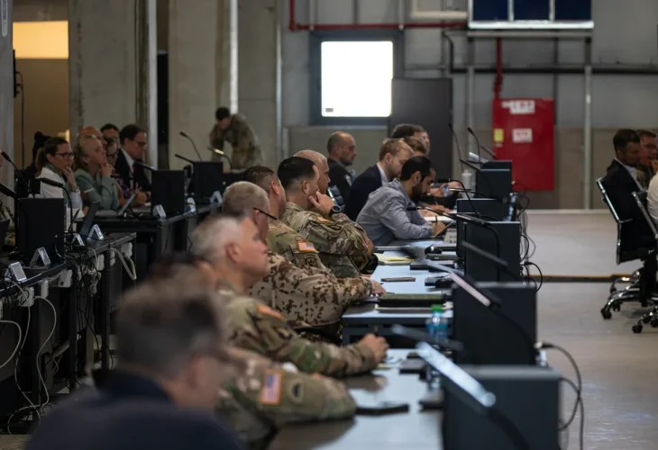 המפקדה האמריקנית בקריית גת (צילום: צבא ארה"ב, סמל ראשון מלקולם כהנס-אשלי)דיווח שפורסם היום (שני) בגרדיאן מציג תמונת מצב מתוחה במפקדת התיאום האזרחי-צבאי (CMCC) בקריית גת.