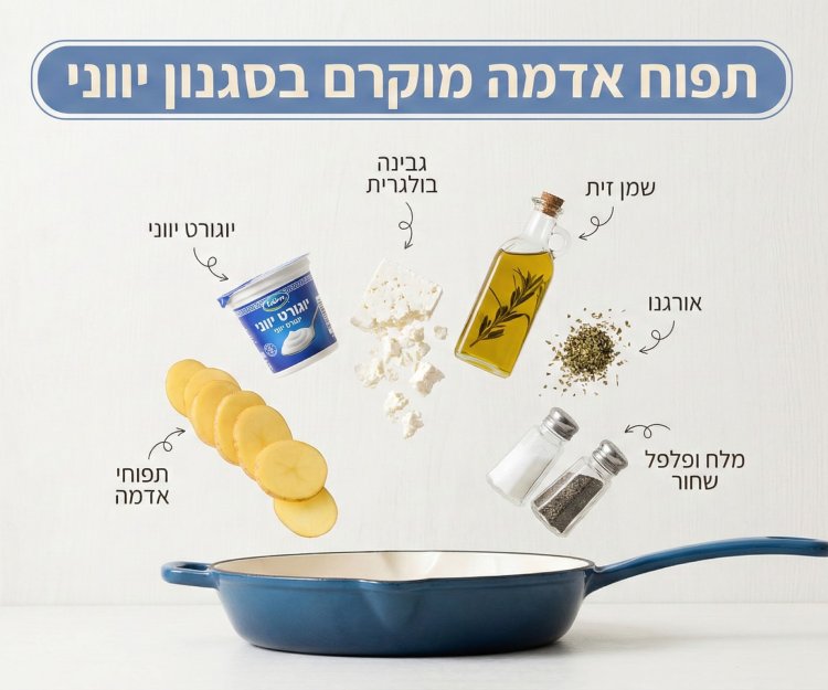 היוונים אוהבים את זה ככה? תפוחי אדמה פרוסים, שמנת או יוגורט יווני, גבינה בולגרית מפוררת, שמן זית, אורגנו, מלח ופלפל שחור.