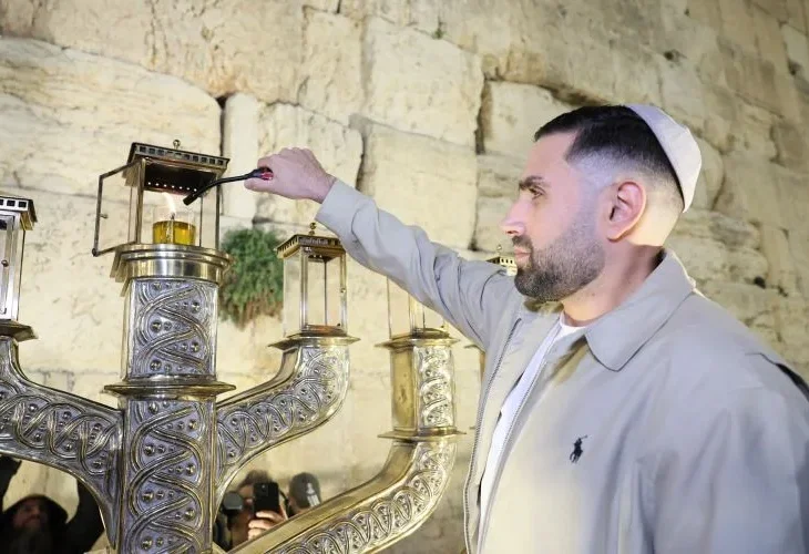 שורד השבי שגב כלפון הדליק נר ראשון של חנוכה בכותל המערבי