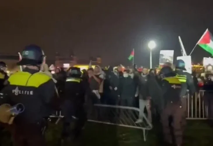 פרו-פלסטינים באמסטרדם מחוץ לאירועי חנוכה בעיר (שימוש לפי סעיף 27א׳)הפגנות אלימות נרשמו הלילה (בין ראשון לשני) באמסטרדם, לאחר שפעילים פרו-פלסטינים קיימו מחאות נגד הופעותיו של החזן הצבאי הראשי, שי אברמסון. העימותים התרחשו סביב אולם הקונצרטים קונצרטחבאו, שם נערכו מספר הופעות כחלק מאירועי חנוכה.