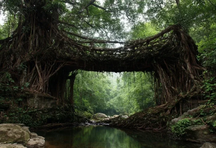 לא בטון ולא ברזל: הגשרים המרשימים בהודו שצומחים מהאדמה