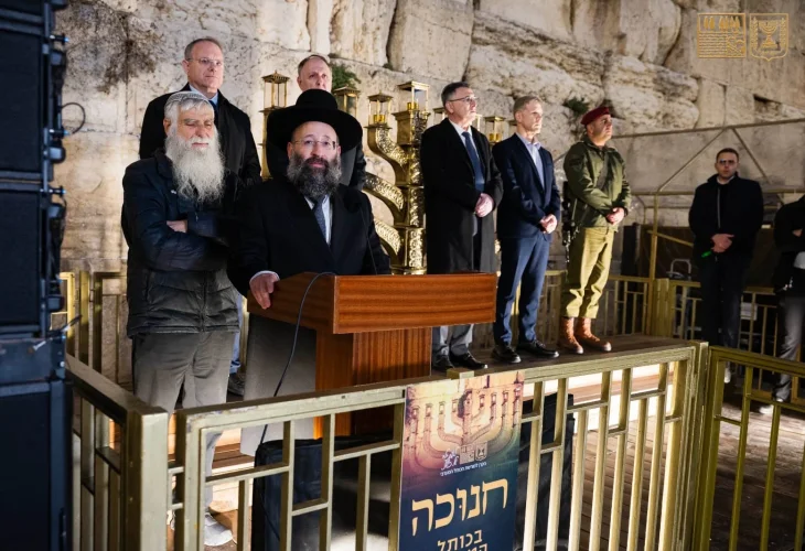 בקריאה בינלאומית נגד האנטישמיות - שגרירים זרים הדליקו נר חמישי של חנוכה בכותל המערבי