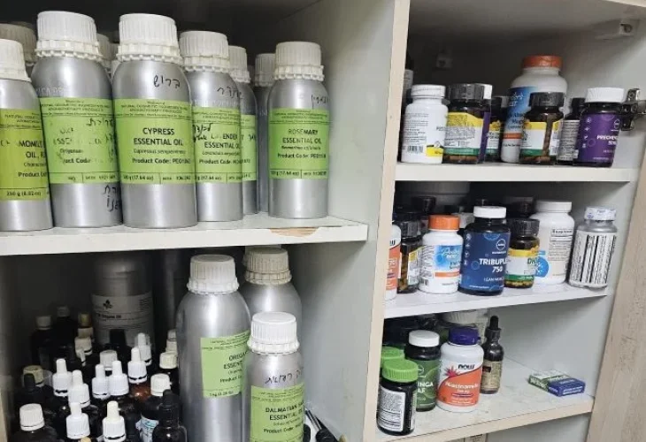 במהלך חיפוש בביתו נתפסו מגוון שמנים בבקבוקונים, אבקות חשודות וקפסולות ריקות ששימשו להכנת מוצרים לא מאושרים על ידי משרד הבריאות ומכירתן. כמו כן נתפסו מסמכים רפואיים של "לקוחות". בסיום החקירה שוחרר החשוד בתנאים מגבילים ומעצר בית.