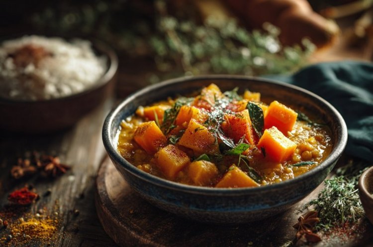 השילוב בין דלעת לתבליני קארי יוצר מנה מחממת במיוחד. דלעת מבושלת עם עדשים כתומות, חלב קוקוס, כורכום וקארי עדין נותנת תבשיל סמיך, מזין ומשביע. זו מנה מושלמת לימי חורף ארוכים, שמרגישה גם בריאה וגם מפנקת.