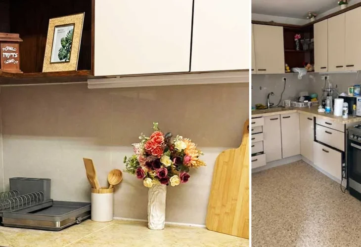 אחרי שינוי מהותי בסלון ובפינת האוכל הגיע תורם של המטבח וחדר האמבטיה. שינוי גדול בתקציב קטן, עם אקססוריז בלבד ובלי שיפוץ