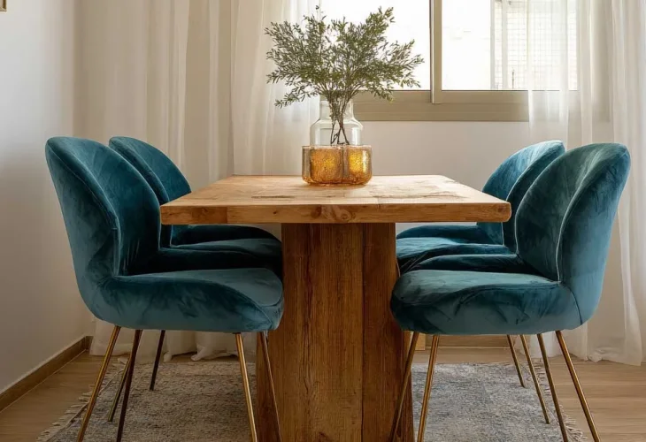 מדף עץ אחד איכותי, שולחן סלון או כיסאות בפינת אוכל יכולים לשנות תחושה של חלל שלם