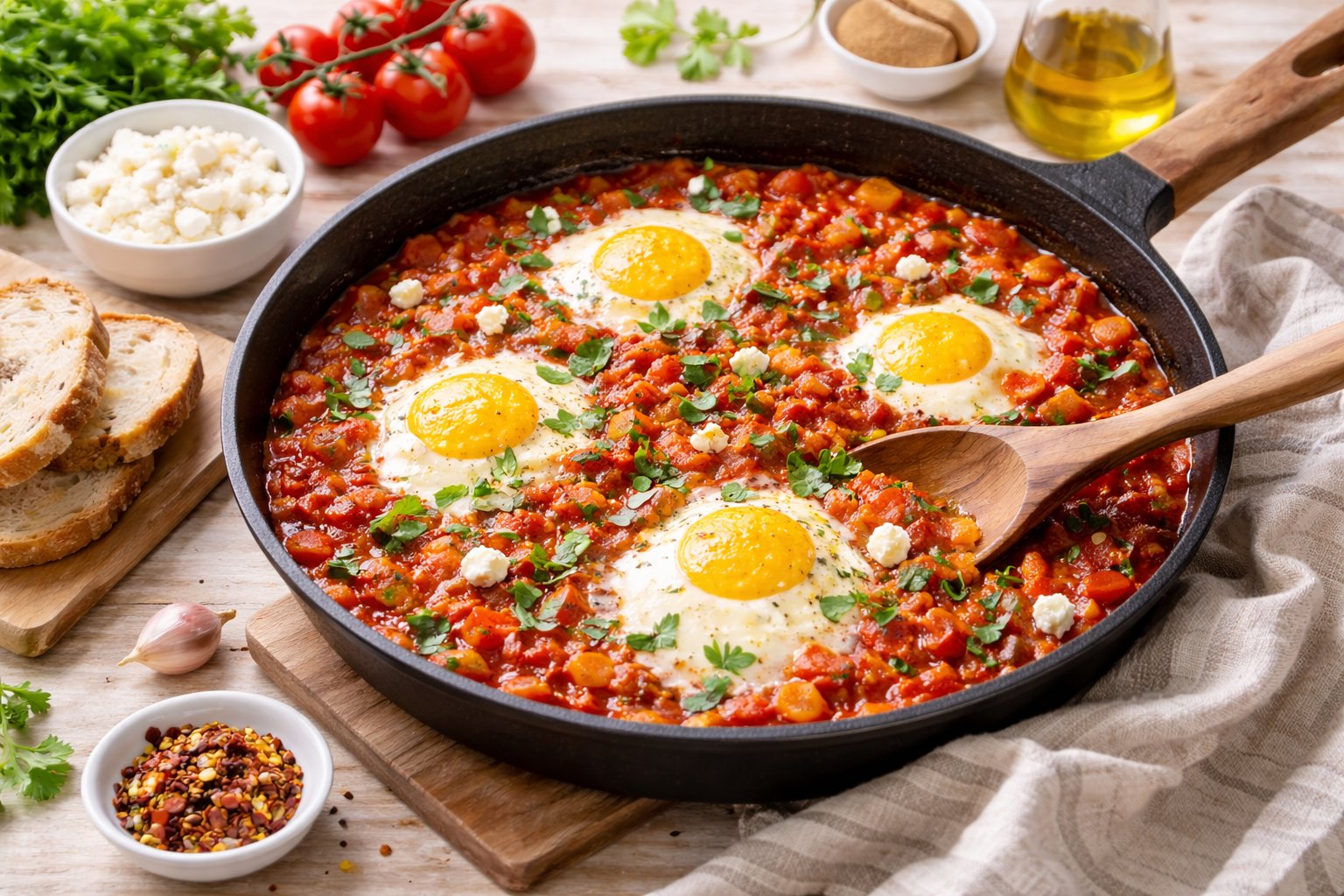 - שקשוקה מהירה: מחממים מחבת עם מעט שמן, יוצקים פחית עגבניות מרוסקות ומתבלים במלח, פלפל ושום. כשזה מבעבע, שוברים פנימה ביצים, מכסים ל-5 דקות ומגישים עם לחם מהפריזר.