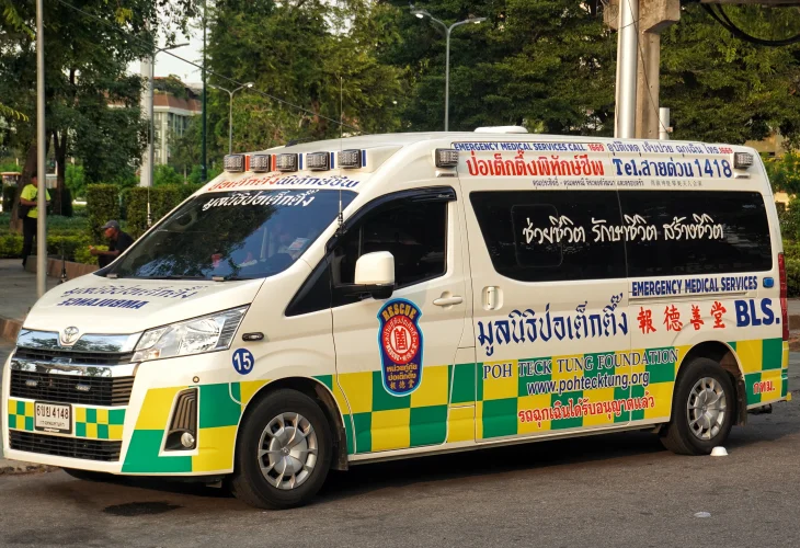 אמבולנס בתיאלנד (קרדיט: shutterstock)שישה צעירים ישראלים בשנות ה-20 לחייהם נפצעו היום (שבת) בתאונת דרכים קשה בצ’אנג מאי שבצפון תאילנד, לאחר שמיניבוס שבו נסעו היה מעורב בתאונה. כך דיווחה חברת פספורטכארד, שציינה כי אחד מהפצועים מוגדר במצב אנוש ומנותח בבית חולים. יתר המטיילים נפגעו בגפיים בדרגות פציעה חמורות פחות.