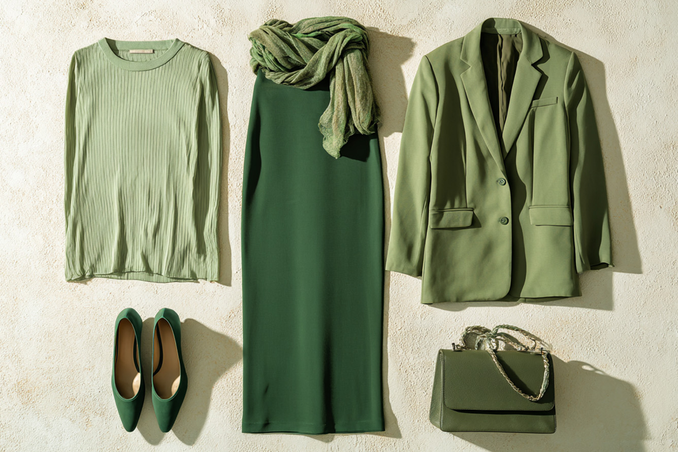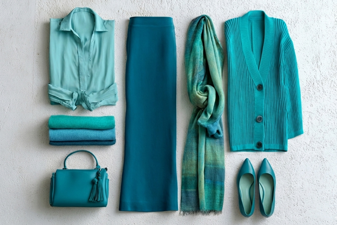 בחרי פריט בצבע שאת אוהבת ומרגישה בו בנוח (למשל, כחול, ירוק, אפור, ורוד), ושלבי פריטים בגוונים שונים של אותו צבע, מבהיר מאוד ועד כהה מאוד. לדוגמה, חולצת טורקיז בהיר עם חצאית כחול עמוק.
