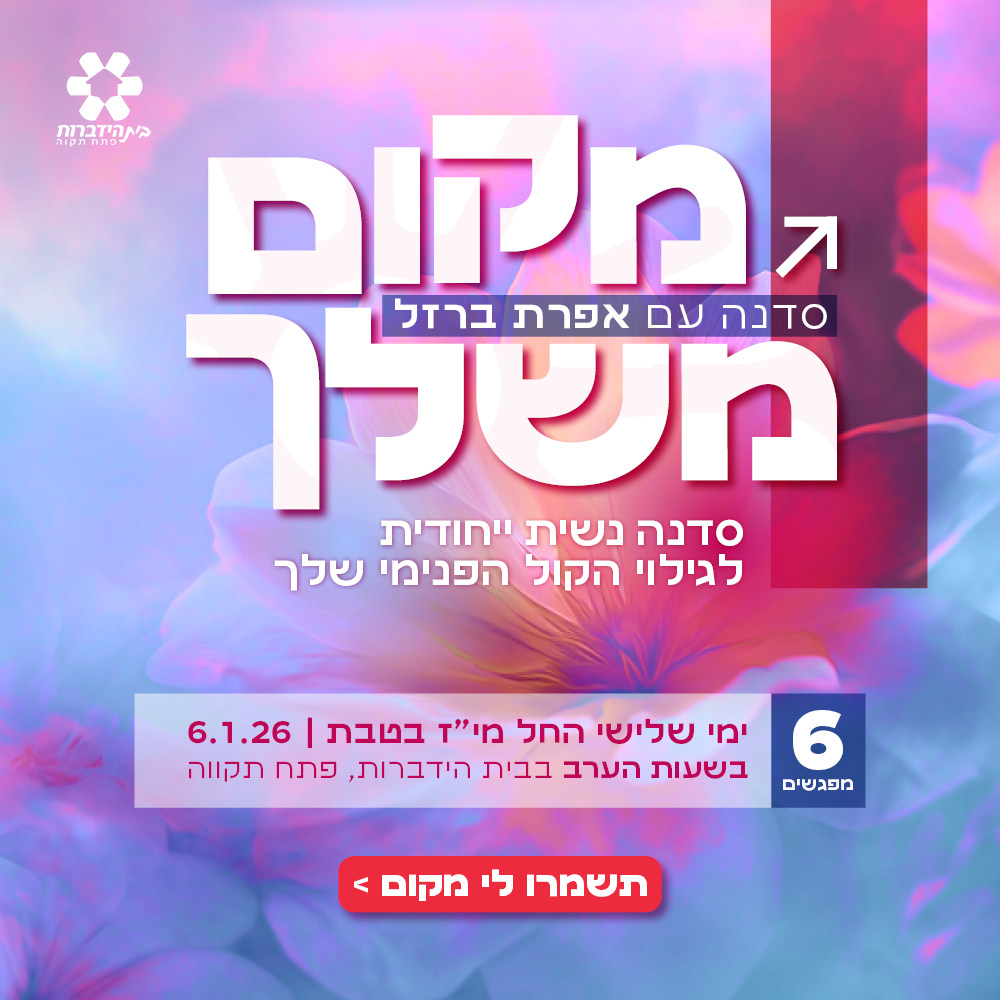 הסדנה מתקיימת בשעות הערב בבית הידברות בפתח תקווה.