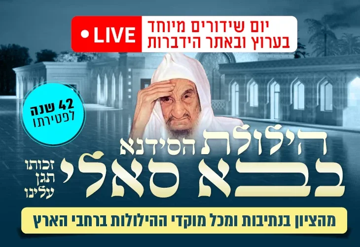 לרגל יום הילולת הבבא סאלי: סיפורי מופתים ופיוטים מרגשים מתוך חדרו הקדוש של בנו וממשיך דרכו, הבבא ברוך. שידור חי באתר ובערוץ הידברות
