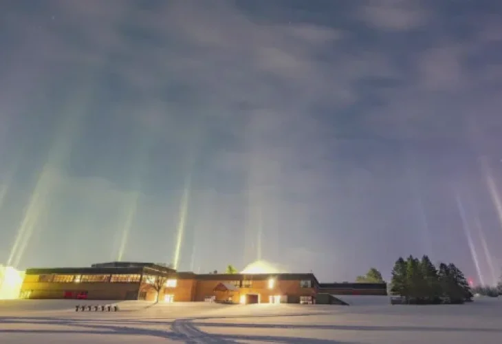 בשמיים נצפו עמודי אור אנכיים שנראו כאילו הם יורדים מהשמיים. למרות שזה נראה כמו סצנה דמיונית לחלוטין, מדובר בתופעה טבעית מרהיבה ומרתקת.
