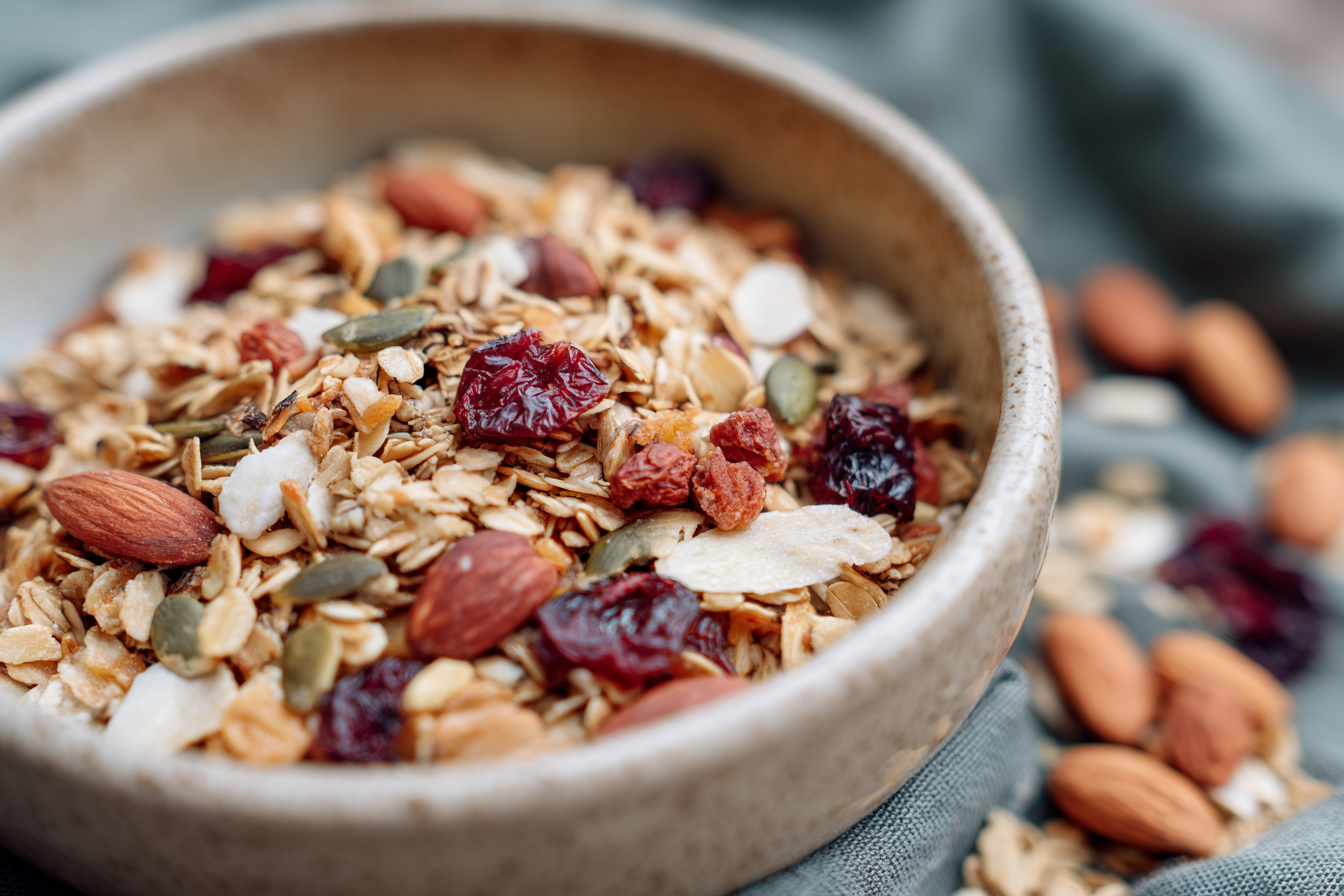 רוצים דגני בוקר? אל תסתפקו בחלב רגיל. הוסיפו להם יוגורט יווני (עשיר בחלבון), כף של זרעי צ'יה או חופן שקדים. השומן והחלבון יעכבו את ספיגת הפחמימות וימנעו את נפילת הסוכר.