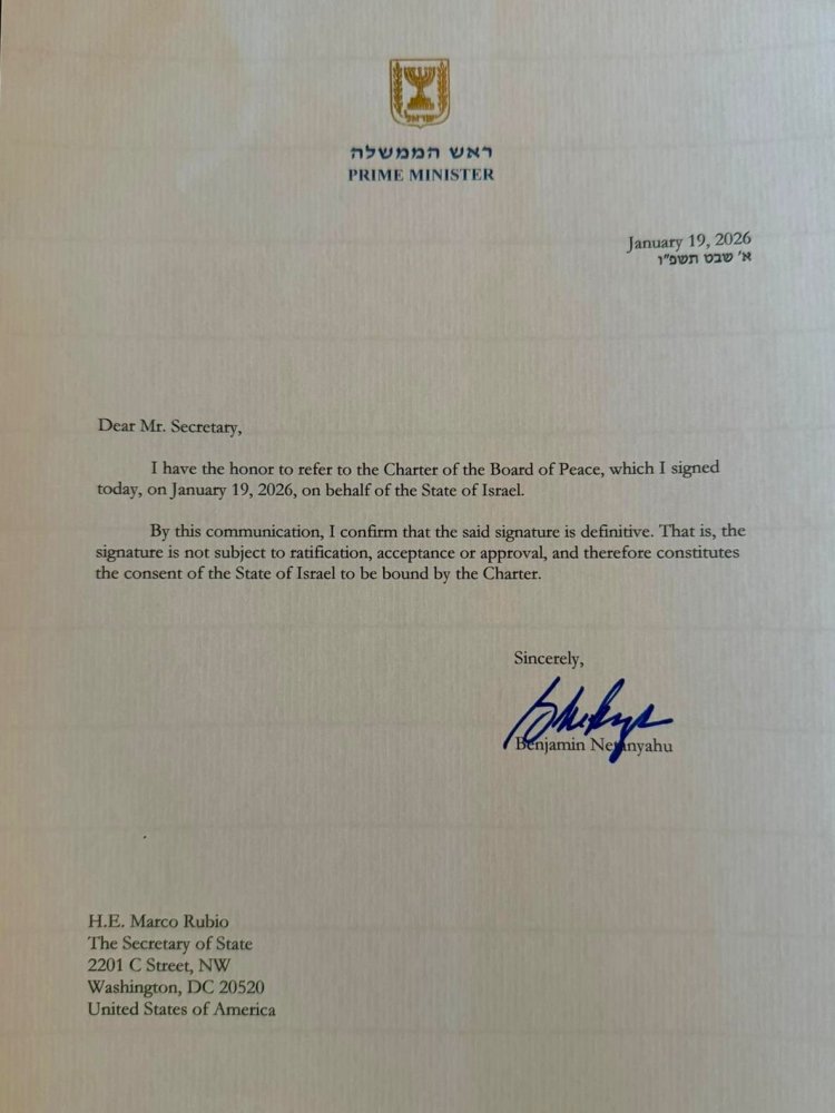 טרם פגישתו עם טראמפ, נועד נתניהו מזכיר המדינה האמריקני, מרקו רוביו, וחתם בנוכחותו על הצטרפותו כחבר ב"מועצת השלום" לעזה, אותה הקים הנשיא האמריקני.