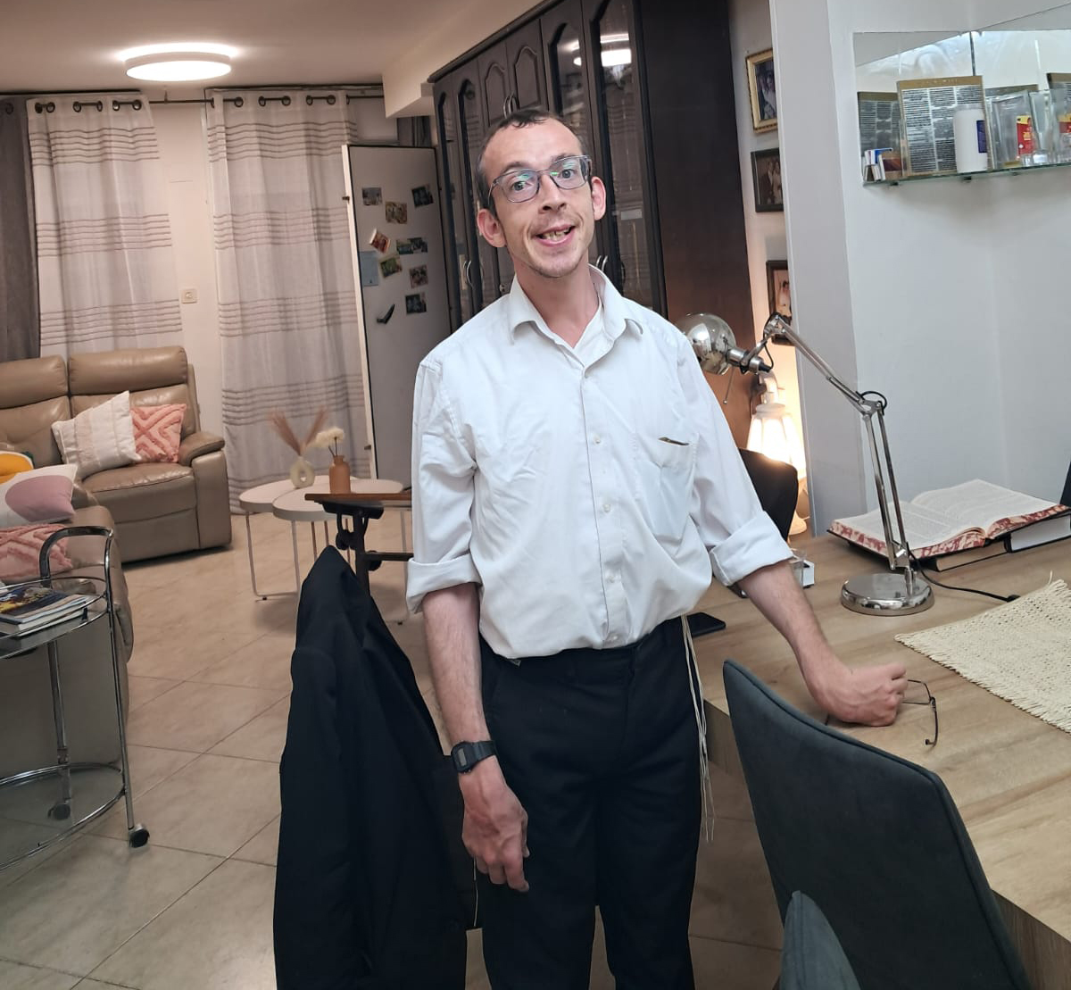 שדמי (31) הוא בחור ישיבה, לומד שלושה סדרים ביום ולא עושה לעצמו הנחות למרות שהוא מתמודד עם שיתוק מוחין (CP). בסיום הריאיון, אימו שולחת לי מספר סרטונים שמדגימים את העזרה הקבועה שלו בהכנות לשבת: הוא שוטף כלים, מעביר סמרטוט ויודע גם לתת יד בבישולים.