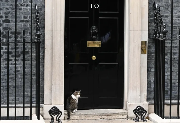 לארי בן ה-19, שנאסף בפברואר 2011 מבית המחסה לכלבים וחתולים "בטרסי", הוא לא סתם חיית מחמד; הוא הפך לאייקון בריטי, שזכה לעבור תחת ידיהם (למעשה, תחת רגליהם…) של לא פחות משישה ראשי ממשלה – מדיוויד קמרון ותרזה מיי, עבור בבוריס ג'ונסון, ליז טראס ורישי סונאק, ועד לראש הממשלה הנוכחי (בינתיים...), קיר סטארמר.