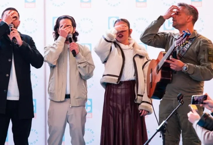 שגב כלפון, מתן צנגאוקר ואילנה גריצבסקי הגיעו לטיימס סקוור בניו יורק. אחרי שזעקו "שמע ישראל", הם קראו עם הקהל "שיר למעלות". גריצבסקי: "כשכולנו מאוחדים - אף אחד לא יכול עלינו"