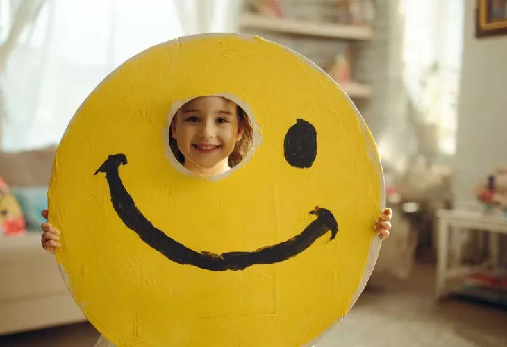 חותכים עיגול גדול מקרטון, צובעים בצהוב ומציירים פרצוף אמוג’י אהוב. מחברים רצועות לכתפיים – וקיבלתם תחפושת קלילה ומצחיקה שמצטלמת נהדר.