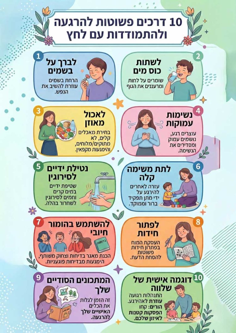 10. הפסקות לאיזון: מי שמצליח לשמור על קור רוח ועל התנהלות עניינית לפי ההנחיות הנדרשות, כבר עוזר לאחרים להרגיש יותר רגועים. הורים יקרים, קחו הפסקות קטנות לשמור על האיזון שלכם, זה יעזור לכולם.