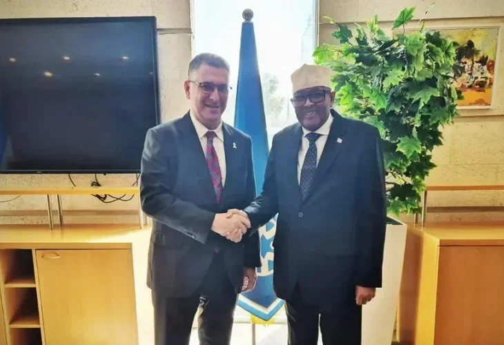 סער ונשיא סומלילנד עבדלאהי במשרד החוץ בירושלים (צילום ארכיון: משרד החוץ)רשת "בלומברג" האמריקנית דיווח הערב (רביעי) כי ישראל בוחנת הקמת בסיס צבאי בסומלילנד, שיעניק לה אפשרות לתקוף את החות'ים בתימן מנקודה קרובה יותר.