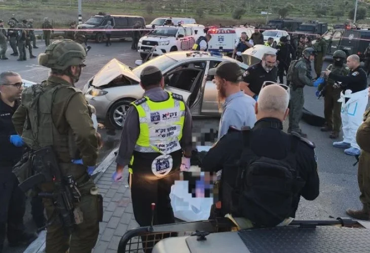 זירת האירוע (צילום: דוברות זק"א)שני מחבלים ניסו לפנות ערב (חמישי) לדרוס קבוצת חיילים בצומת תפוח. השניים חוסלו בידי הלוחמים, ולא דווח על נפגעים בקרב כוחותינו.