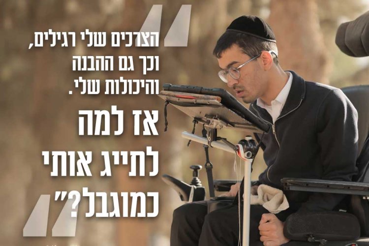 הצעיר שמתקשר עם האף: "ההבנה והיכולות שלי רגילות לגמרי, אז למה לתייג אותי כמוגבל?"