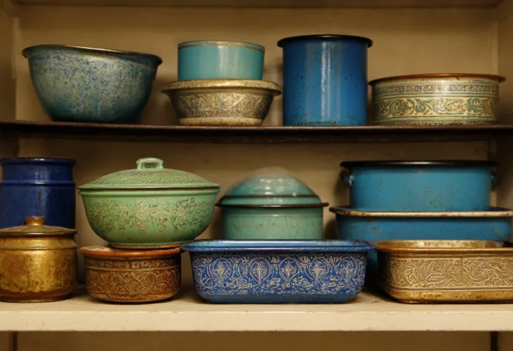 קערת סדר מאמייל. כלי אמייל היו נפוצים מאוד בגלל הפשטות והעמידות שלהם