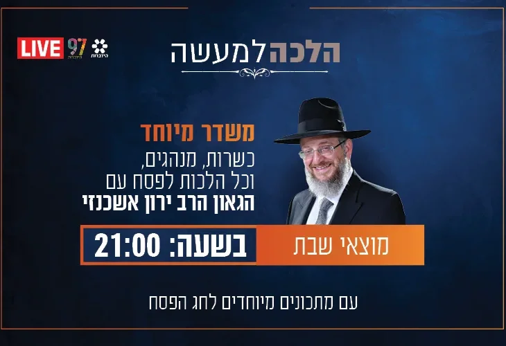 הכנה לחג הפסח: משדר מיוחד עם הרב ירון אשכנזי