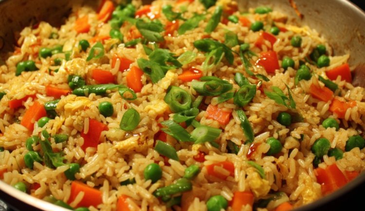 מחממים מעט שמן במחבת, מוסיפים את הירקות ומטגנים כמה דקות. מזיזים לצד, שוברים ביצה ומערבבים. מוסיפים את האורז ואת רוטב הסויה, מתבלים ומערבבים היטב עד שהכול מתחמם ומתאחד.